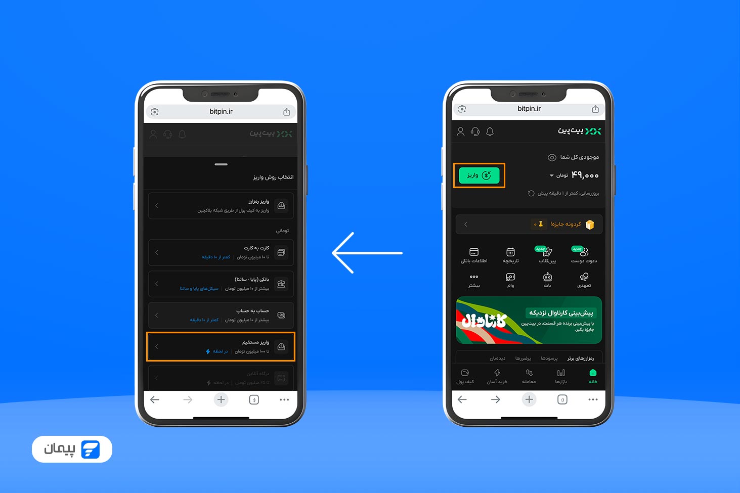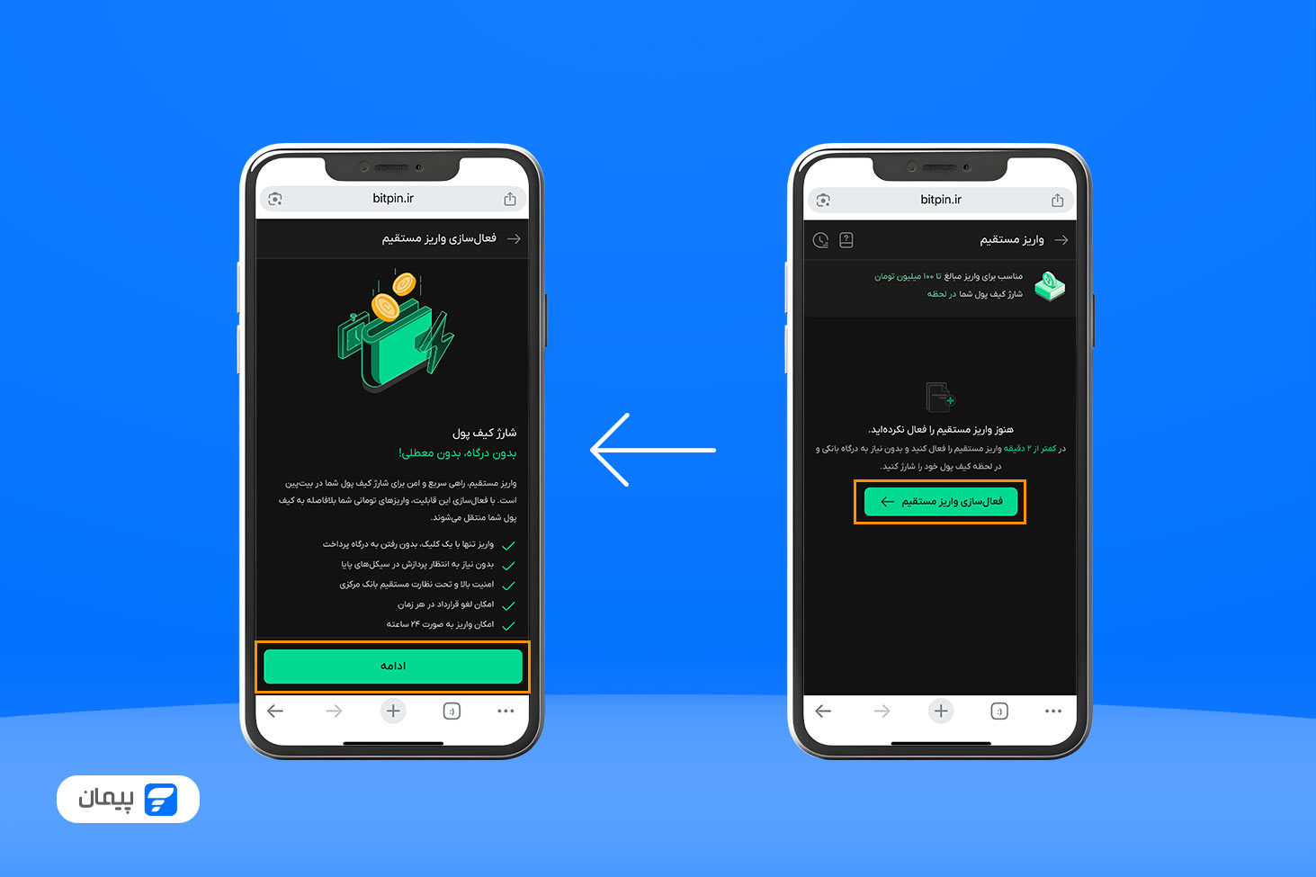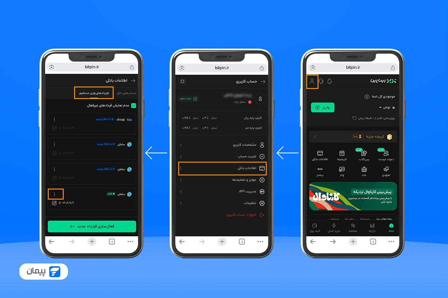 در ادامه، مراحل فعال‌سازی و استفاده از واریز مستقیم در بیت‌پین را به‌صورت تصویری و گام‌به‌گام مرور می‌کنیم.