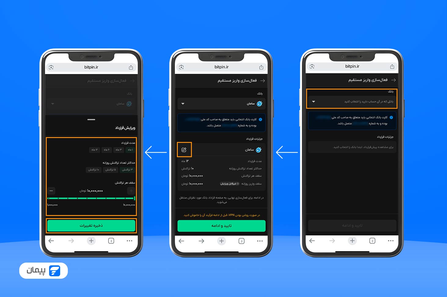۵. ویرایش قرارداد واریز مستقیم در بیت‌پین