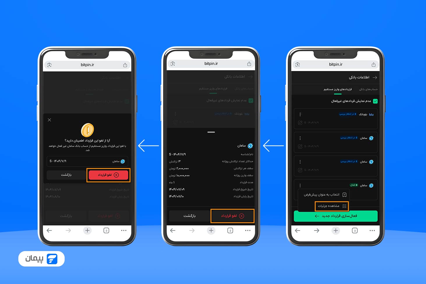 برای لغو قرارداد واریز مستقیم در بیت‌پین مراحل زیر را طی کنید:
