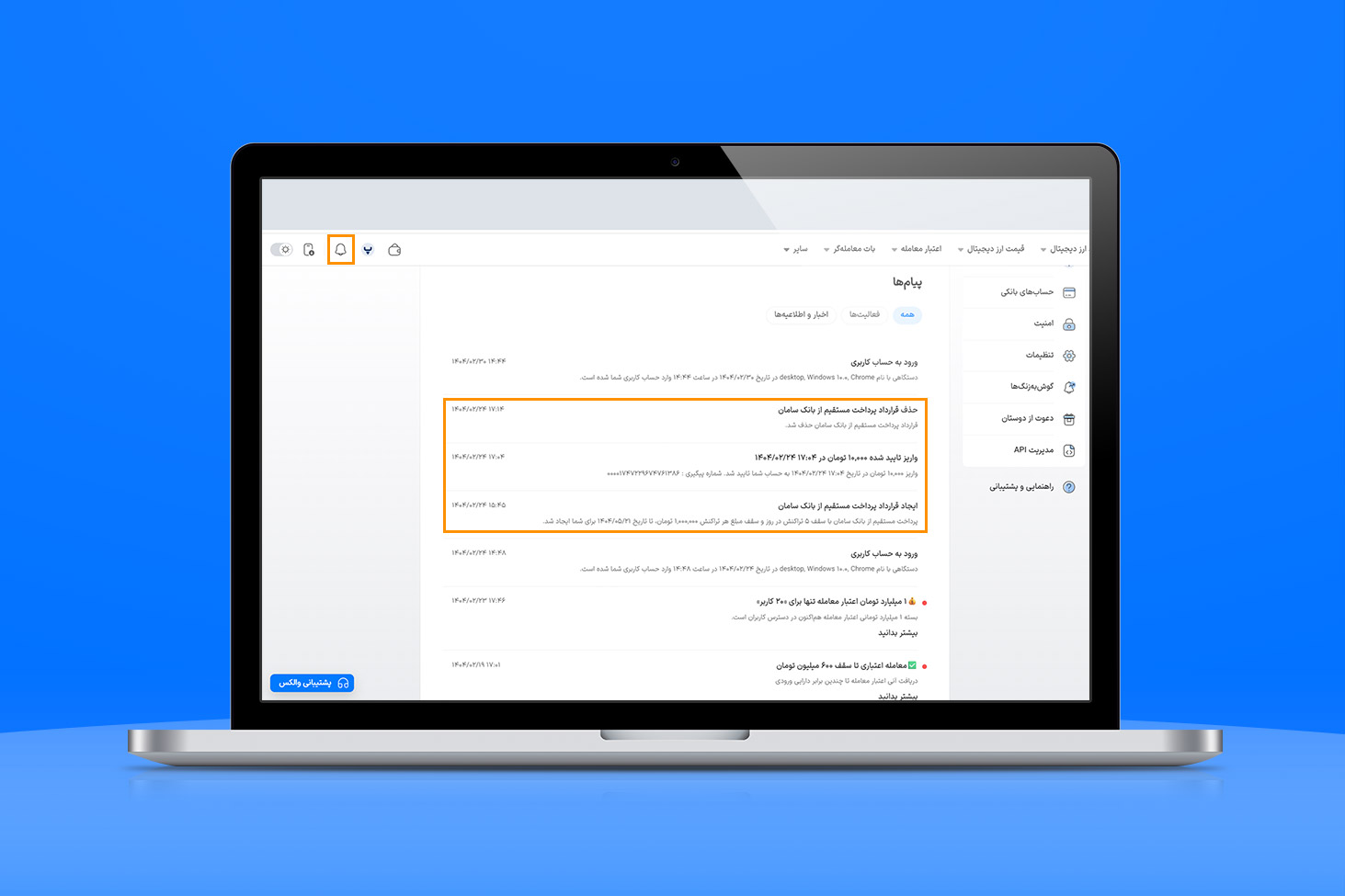 مشاهده پیامها و اعلانهای پرداخت مستقیم در والکس